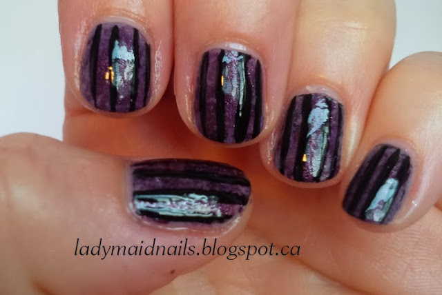 These were a pain to photograph, but I'm proud of my first free-hand striping. The colour I chose is purple, which is one of my favorites.